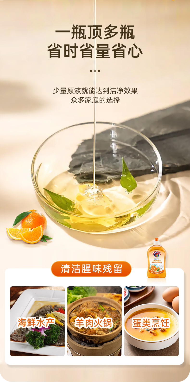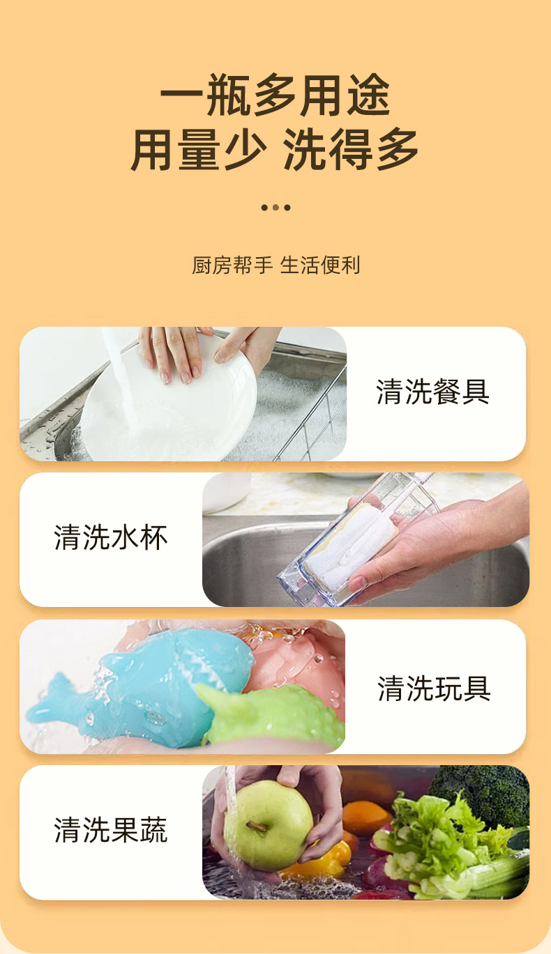 萃取天然植物橙味,气味宜人,浓缩配方,易过水,无残留,高效去油污,亲肤不伤手