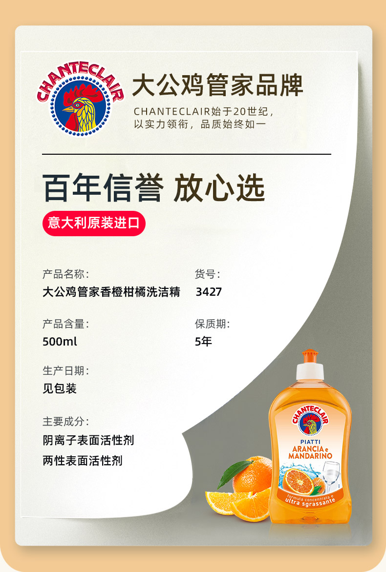 大公鸡管家香橙柑橘洗洁精