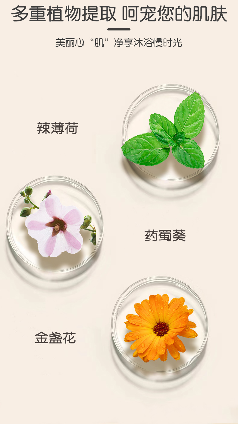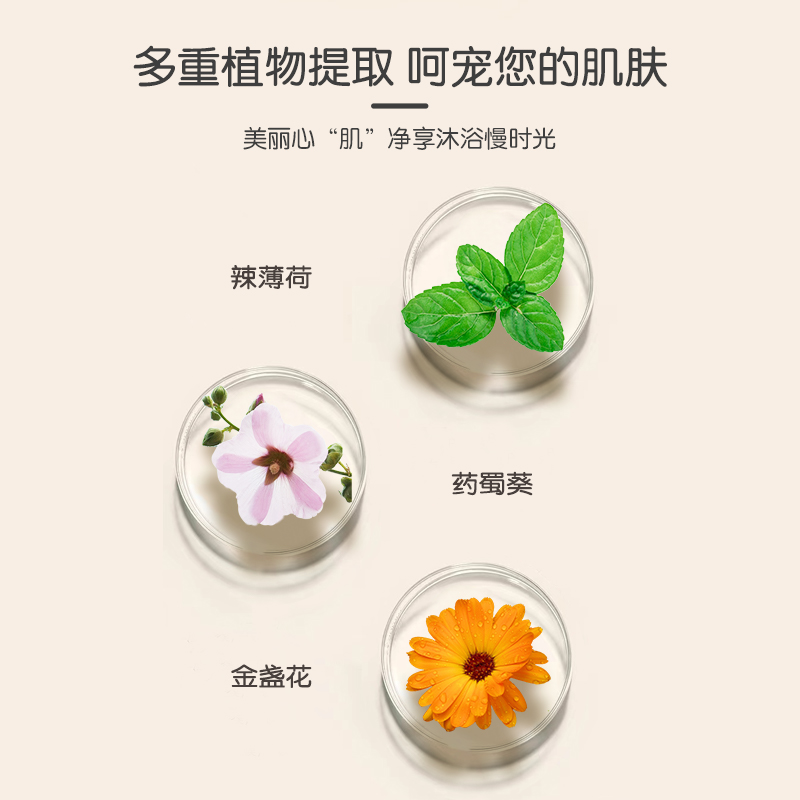 天然植物配方,为肌肤和头发提供营养,洗后舒适干爽,不紧绷