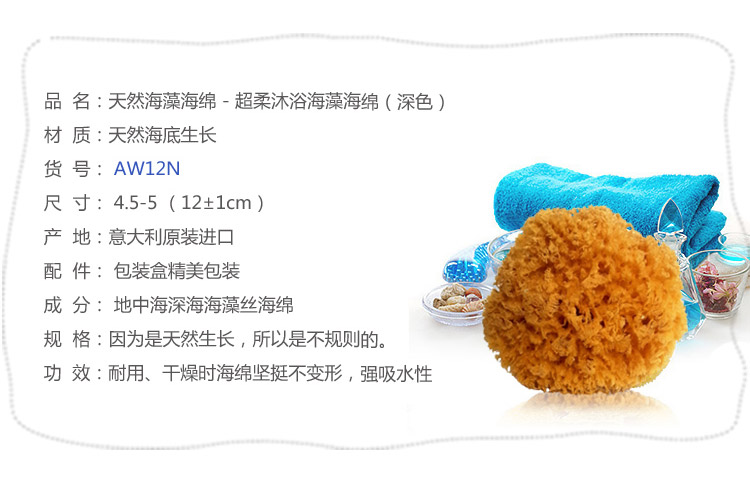 意大利进口洛森菲尔 天然海藻海绵 - 超柔沐浴海藻海绵(深色)
