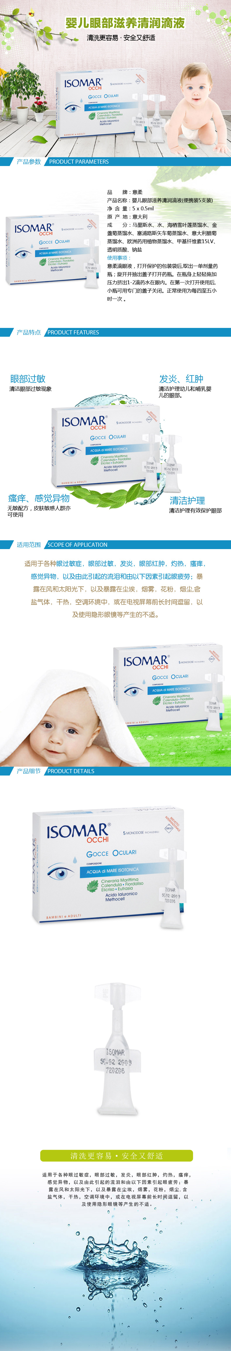 意大利进口意柔 婴儿眼部滋养清润滴液(5支装)