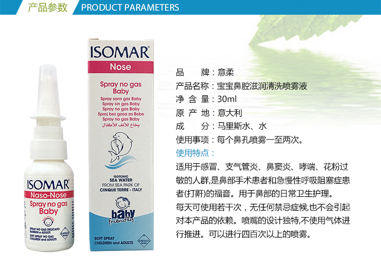 意大利进口意柔 鼻腔滋润清洗喷雾液