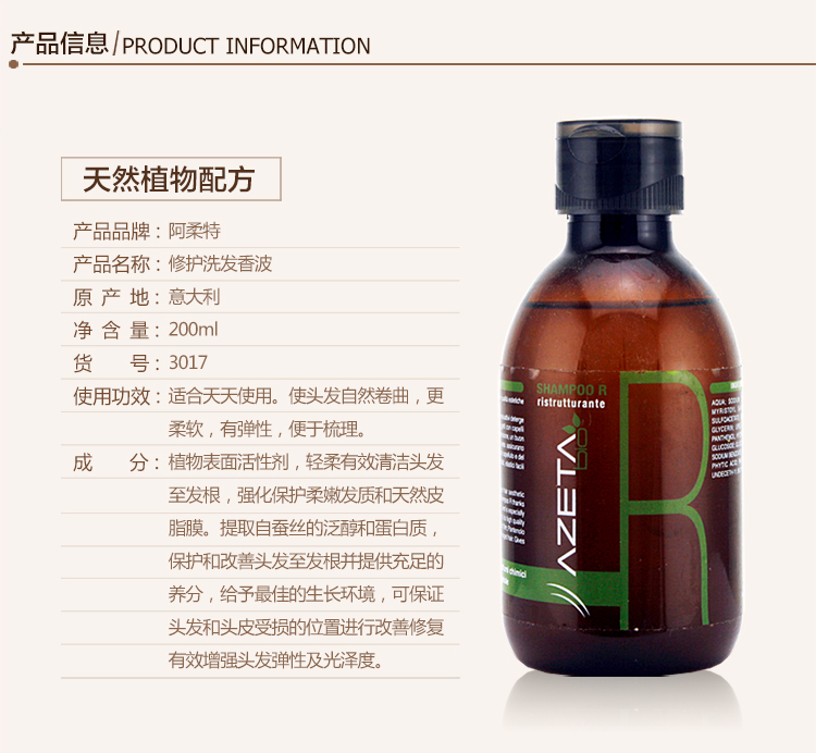 意大利进口阿柔特洗发香波系列-修复洗发香波-R